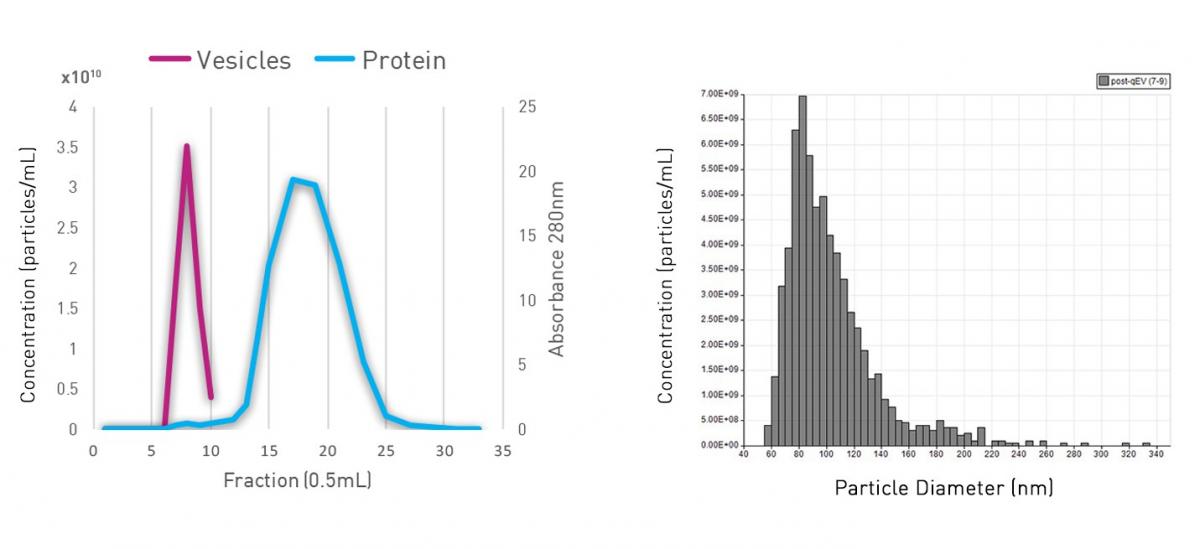 qEV, particularly when combined with TRPS measurement, offers a well-standardised protocol for EV isolation and measurement, with the lowest CV of any system available. Standardisation and repeatability are critical for success in diagnostics applications and in EV based therapeutics.