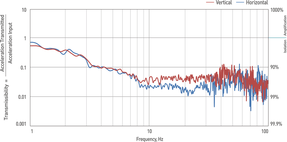 The advanced active vibration isolation algorithms allow the DVIA-U starts to isolate at 0.5 Hz, delivering ≥90% vibration isolation at ≥4 Hz.