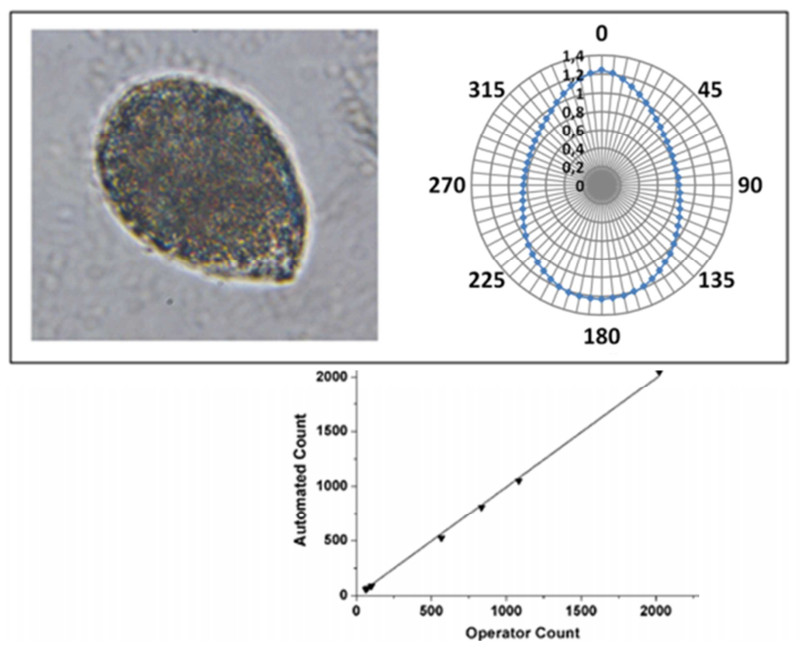 The software returns number of counted Ostreopsis ovata cells and their concentration. Results are then conveniently stored in a database. The OvMeter software, in addition to the automated counting, allows for user to count manually cells, just same as any other digital microscope.