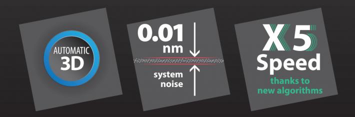 - System noise measured as the difference between two consecutive measures on a calibration mirror placed perpendicular to the optical axis. For interferometry objectives, PSI, 10 phase averages. The 0.01 nm are achieved with Piezo stage scanner and temperature-controlled room. Values for green LED (white LED for CSI). Values obtained in a VC-E vibration environment.