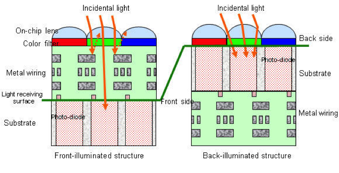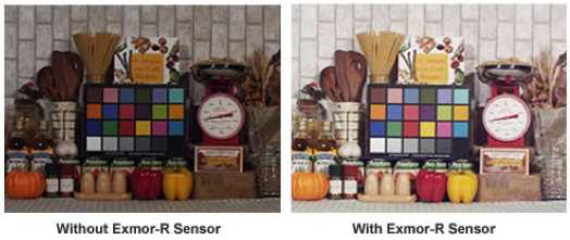Sony Exmor back-illuminated structure sensor, is developed with the intention of capturing vivid images even in low light settings. “Exmor ” sensor is approximately twice as sensitive as a conventional front-illuminated CMOS sensor and also features low noise. This is due to back-illuminated CMOS sensor, light is directed onto the silicon substrate from behind, allowing light to be used with a level of efficiency not possible with conventional front-illuminated pixel structures.